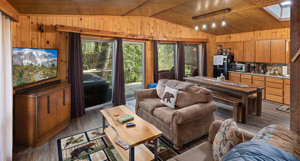 Enjoy the soothing sounds of the creek from inside the cabin or out in the hot tub. The cabin is surrounded by trees so stays cool in the summer and the fireplace keeps it super cozy during the colder months. Come; relax and explore Mt Rainier National Park anytime.